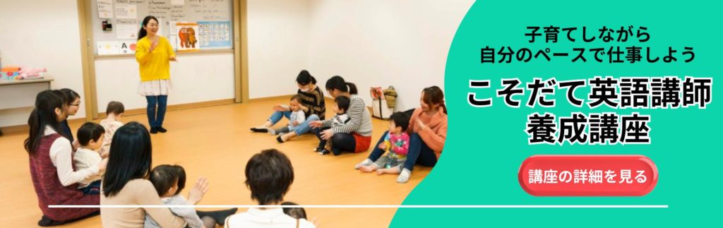 | 講座受講資格条件 | 1.“こそだて英語”の主旨を理解し、こそだて英語を積極的に普及したいとお考えの方 2.パソコン・ネット環境のある方(詳細は 下記必要なネット環境をご確認ください) 3.集中して講座に参加できる環境を設けられる方(講座はご自宅で受けられますが、お子様は一時保育をご利用になるなど講座に集中して受講できる環境が必要となります) 4.課題に真剣に取り組める方 ・前向きな方 |